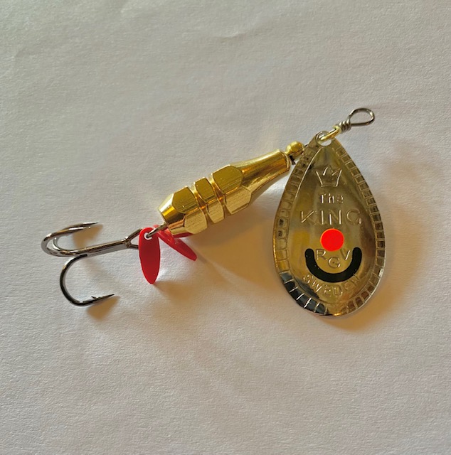 Det består av en tung mässingkropp och en så kallad sked som roterar runt kroppen när draget hamnar i vattnet.